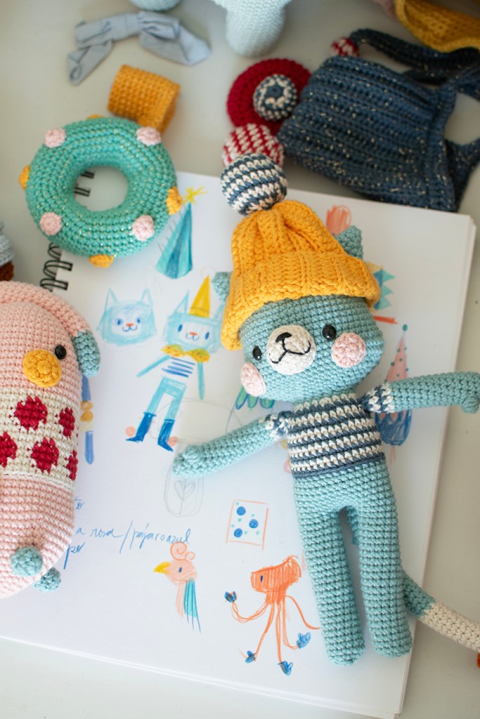 MATERIALS You may crochet Lenny with any kind of thread you like with the appropriate crochet hook . In this case, for the original character that I made for my first Hobbii collection, I used their Friends Cotton yarn line and a 2.75 crochet hook. My suggestion: Cotton 8/7 by Pica Pau for Hobbii Yarns in: - 1 skein of Pastel Mint (#30) or Pale Blue (#31) - 1 skein Golden Yellow (#23), Dandelion (#24) or Honey (#22) - 1 skein of Pale Pink (#10) - 1 skein of Dark Blue (#34) - 1 skein of Green (#26) or Teal Green (#28) Leftover of Black (#37) And Nude Cotton 8/7 by Pica Pau for Hobbii Yarns in: - 1 skein of Coconut Milk (#01) Crochet hook 2.75 mm / US C2 2 safety eyes 8 mm Stuffing Tapestry needle
