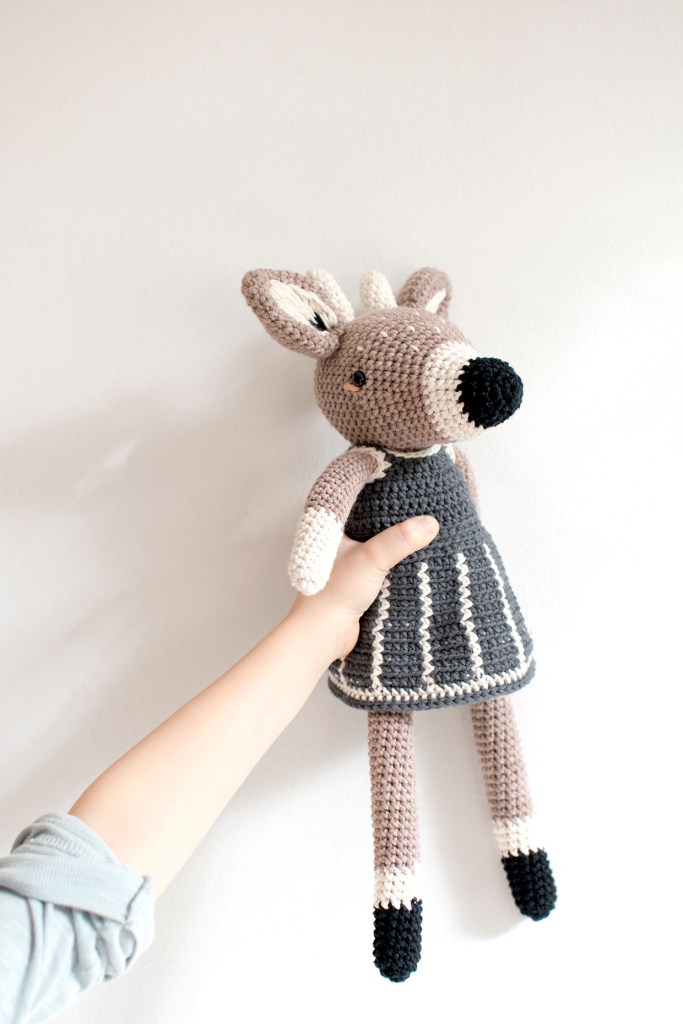 Before starting: Elena Deer is a beginner/intermediate project, worked in a continuous spiral. To keep track of the rounds you may use a stitch marker or safety pin to mark the beginning of a round. The head, body and legs are worked in separated pieces. Elena Deer also has 2 accessories: 2 dresses. Remember that it’s always advisable to give the entire pattern a read before starting crocheting and, most importantly, be patient with yourself!