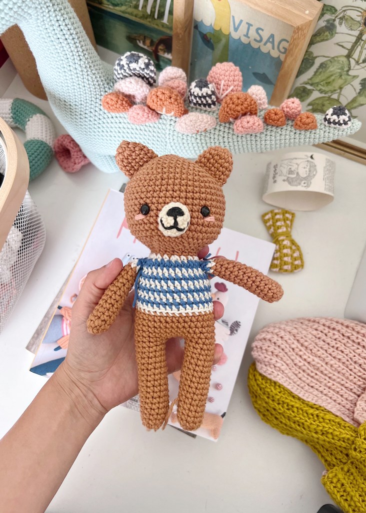 Juan Little Bear is a character born in January 2023 as an excuse to put together some videos that would make it easier to understand how I think about and make my crocheted characters.